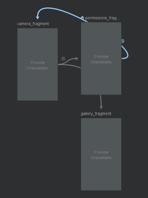 + 버튼을 통해 화면들을 추가하고 드래그하여 선을 연결하면 그래프 구성이 완료된다.